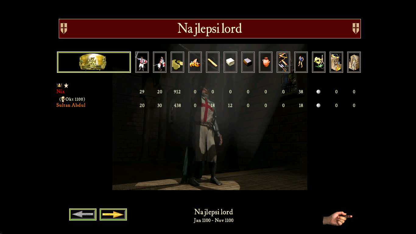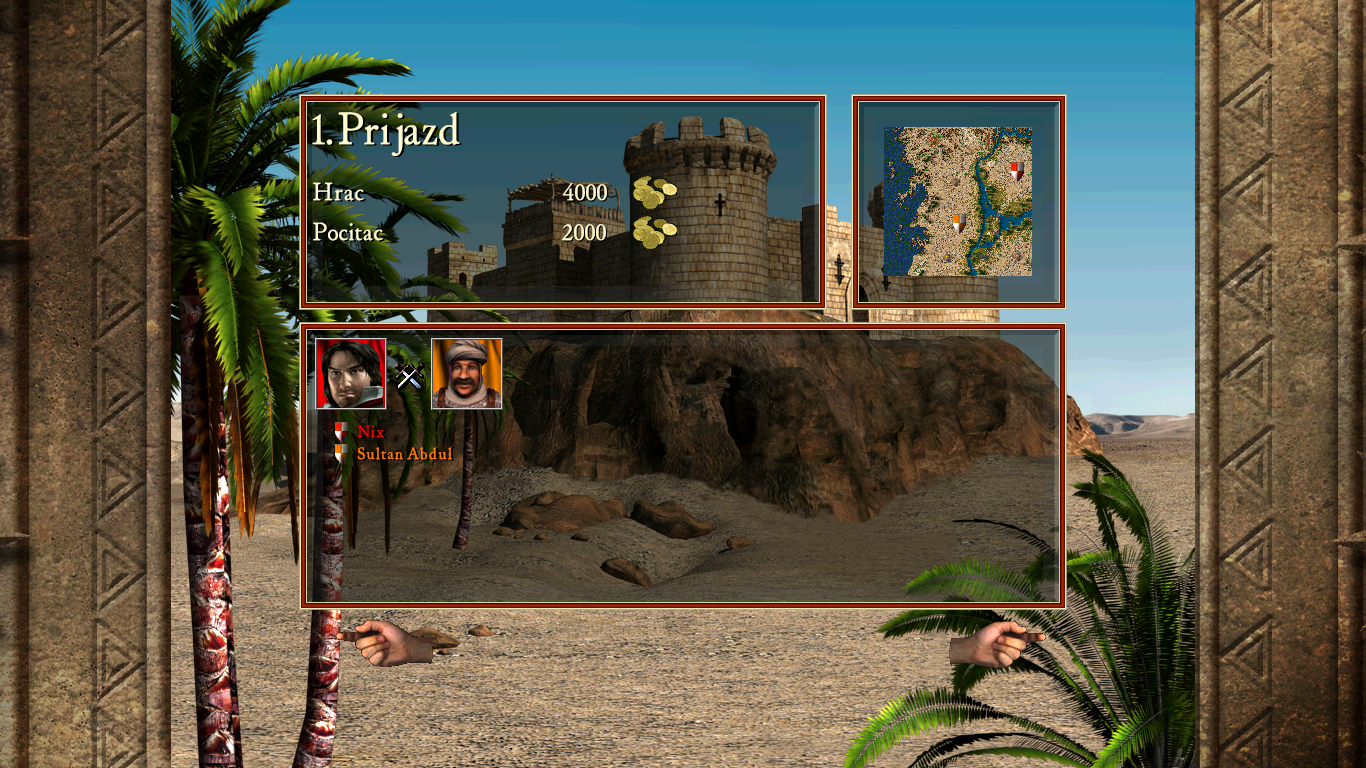 Prvá misia. Ste sám proti oranžovému Sultánovi Abdulovi. Máte 4,000 zlatiek. Sultán má 2,000 zlatiek.
